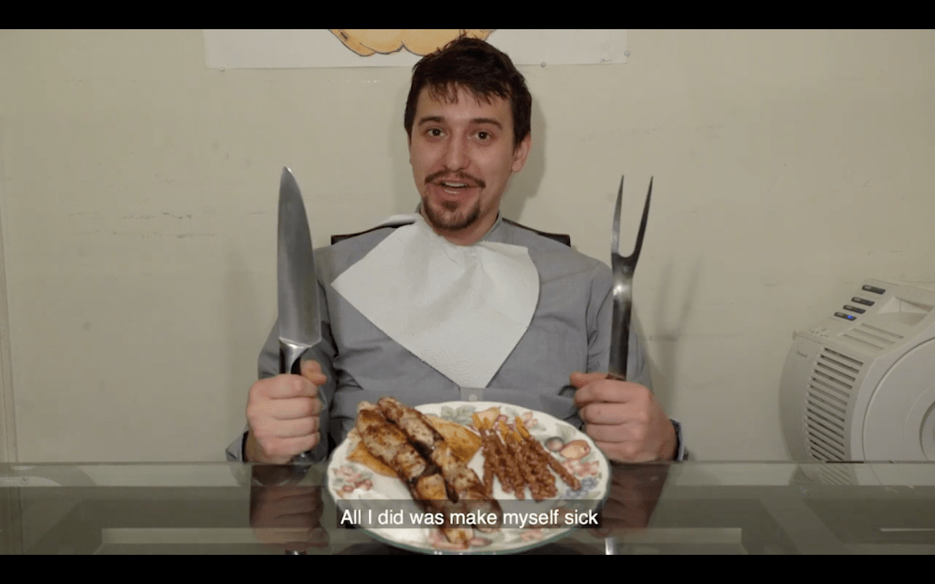 Here’s the music video for Bad Breath by Duncecap, which appeared on his Human Error album five years ago. Dunce has pretty much become one of my favorite music video directors alongside Jason Goldwatch. I really appreciate that all the lyrics are at the bottom of the screen as a caption, and there are a bunch of cool shots I wanna highlight real quick.